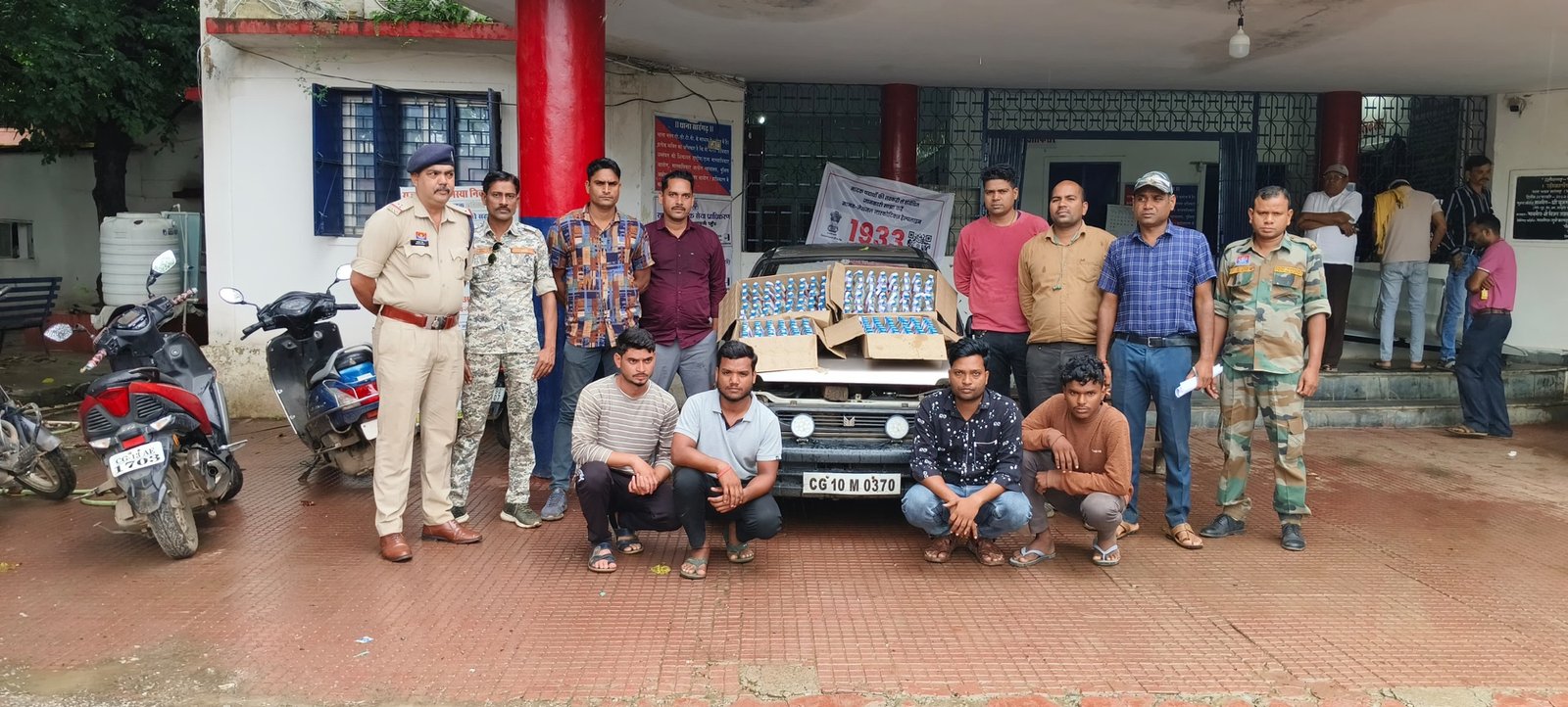 श्रीमान पुलिस अधीक्षक श्री आंजनेय वार्ष्णेय, अति0 पुलिस अधीक्षक श्रीमती निमीषा पाण्डेय एवं एसडीओपी श्रीमति स्नेहिल साहू के द्वारा अवैध शराब बिक्री व तस्करी पर रोकथाम हेतु लगातार निर्देशित किये जाने पर थाना प्रभारी कोतवाली निरीक्षक कामिल हक के कुशल मार्ग दर्शन में थाना सिटी कोतवाली सारंगढ़ के द्वारा अवैध शराब बिक्री व तस्करी करने वाले व्यक्तियों के विरुद्ध कार्यवाही को गई।अप0क्रं0 320/2025 धारा- 34(2)59(क) आबकारी एक्ट में दिनांक- 05.07.2025 को जरिये मुखबिर सूचना मिला कि ग्राम कोतरी से बासिन रोड पर कुछ व्यक्ति बिक्री हेतु अपने अल्टो कार में अवैध शराब परिवहन कर रहे है कि सूचना पर हमराह स्टाफ घेराबंदी कर घटना स्थल जाकर रेड कार्यवाही किया जहां सिल्वर कलर के अल्टो कार क्रमांक- सीजी-10एम-0370 मे (1) किशन लहरे पिता पुकराम लहरे उम्र 25 वर्ष (2) ओम प्रकाश लहरे पिता सत्यनारायण लहरे उम्र 25 वर्ष (3) सूरज सिदार पिता नैनसिंह सिदार उम्र 19 वर्ष साकिनान छोटे लेंध्रा थाना कोसीर जिला सा0बि0 का होना बताये एवं अल्टो कार के अंदर 04 पेटी के अंदर 200 नग देशी मदिरा प्लेन शराब प्रत्येक 180 एमएल वाली जुमला- 36 लीटर कीमती- 16,000 रू0 को कार मालिक (4) कोमल लहरे निवासी लेंध्रा के लिये ले जाना बताये है। उक्त शराब एवं अल्टो कार सीजी-10एम-0370 को जप्त कर कब्जा पुलिस लिया गया आरोपीगण को गिरफ्तार कर न्यायिक रिमाण्ड पर जेल भेजा गया।