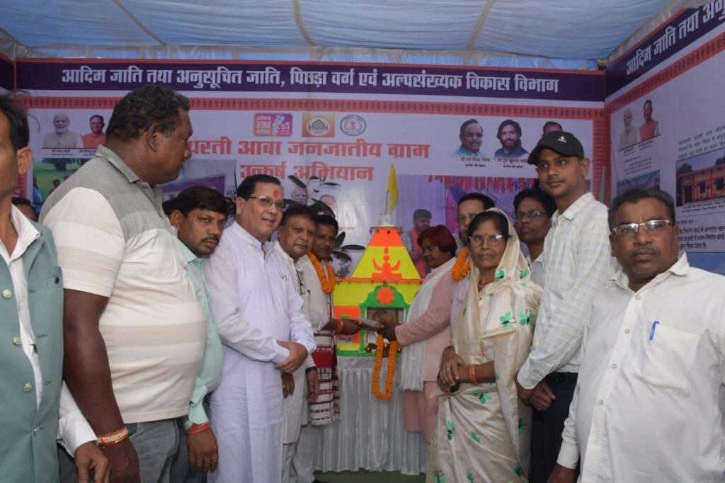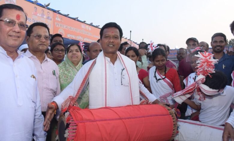 मुख्य अतिथि सांसद राठिया ने आदिम जाति एवं अनुसूचित जाति विकास विभाग के पंडाल में स्थापित देवगुड़ी मंदिर का पूजा अर्चना किया। साथ ही जशपुरिया नर्तक दल के मांदर