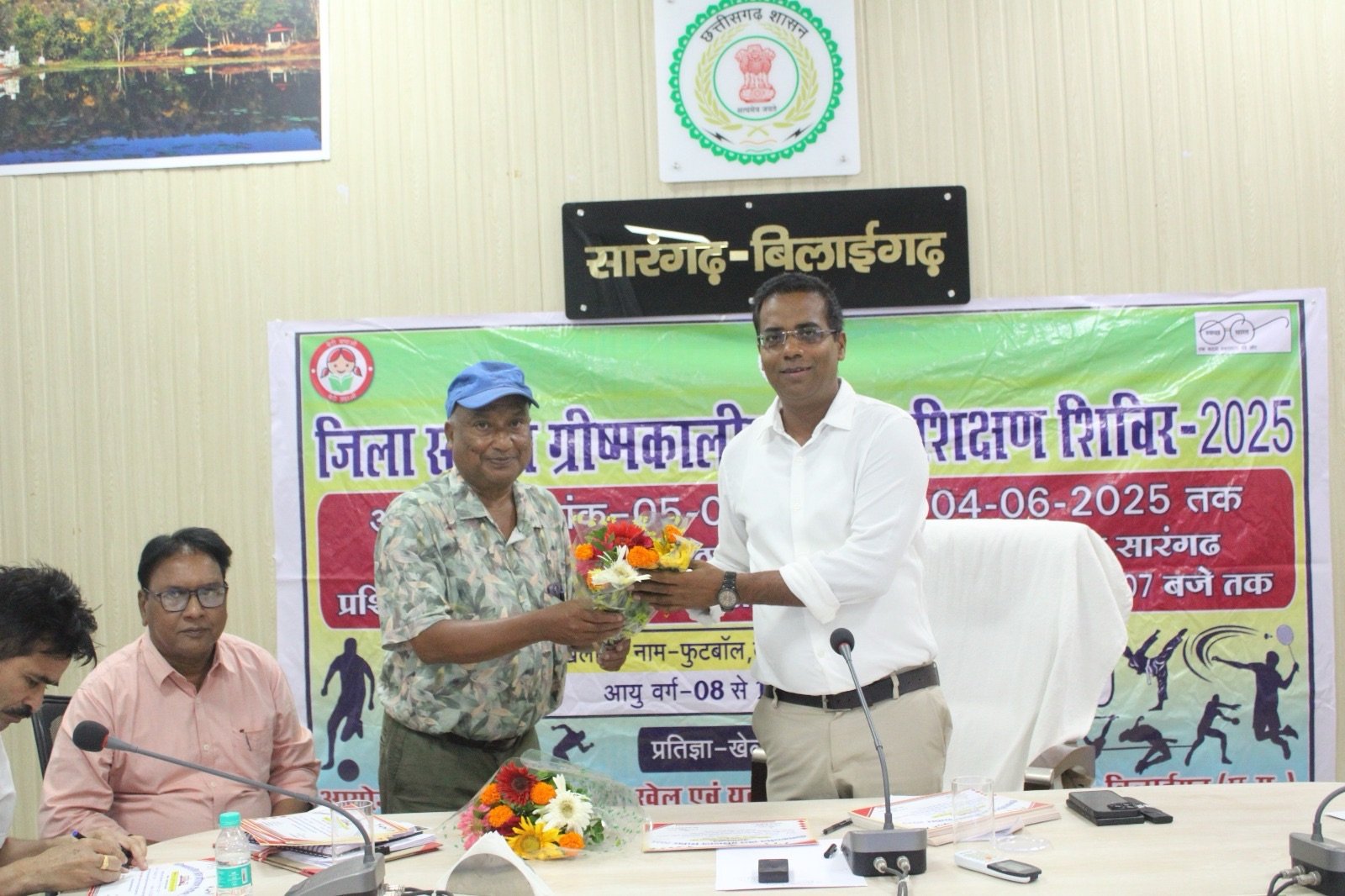 सारंगढ़ बिलाईगढ़I कलेक्टर डॉ संजय कन्नौजे की अध्यक्षता में कलेक्टर सभा कक्ष में जिला स्तरीय ग्रीष्मकालीन खेल प्रशिक्षण शिविर 2025 का समापन किया गया। जिले में इस खेल का शुभारंभ खेलकूद मंत्री टंकराम वर्मा के द्वारा किया गया था। कलेक्टर डॉ कन्नौजे ने कहा कि खेल में अपनी विशेष पहचान बनाकर अपने माता-पिता, गांव शहर, जिले का नाम रोशन कीजिए। समर खेल के अलावा खेल को नियमित खेलते रहें। आप सभी को शुभकामनाएं। इस दौरान अपने अनुभव साझा करते हुए खिलाड़ी बालिका ने कहा कि हम सुबह शाम खेलते थे और दौड़ लगाए हैं। इसी बीच रायपुर भी खेलने गए थे, जहां हम लोगों की जांच भी हुई थी।