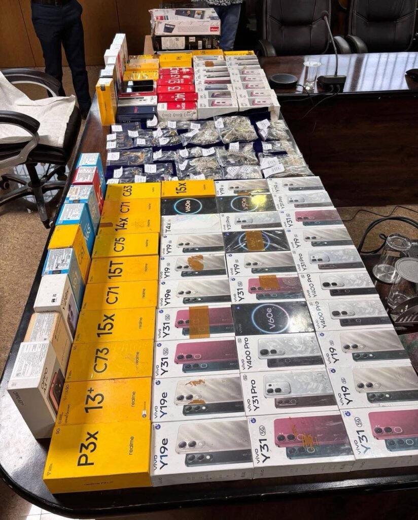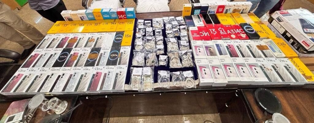 🔹 96 नग मोबाईल बरामद एवं सोना, चांदी के आभूषण/ मुर्तिया, नगदी रकम बरामद।