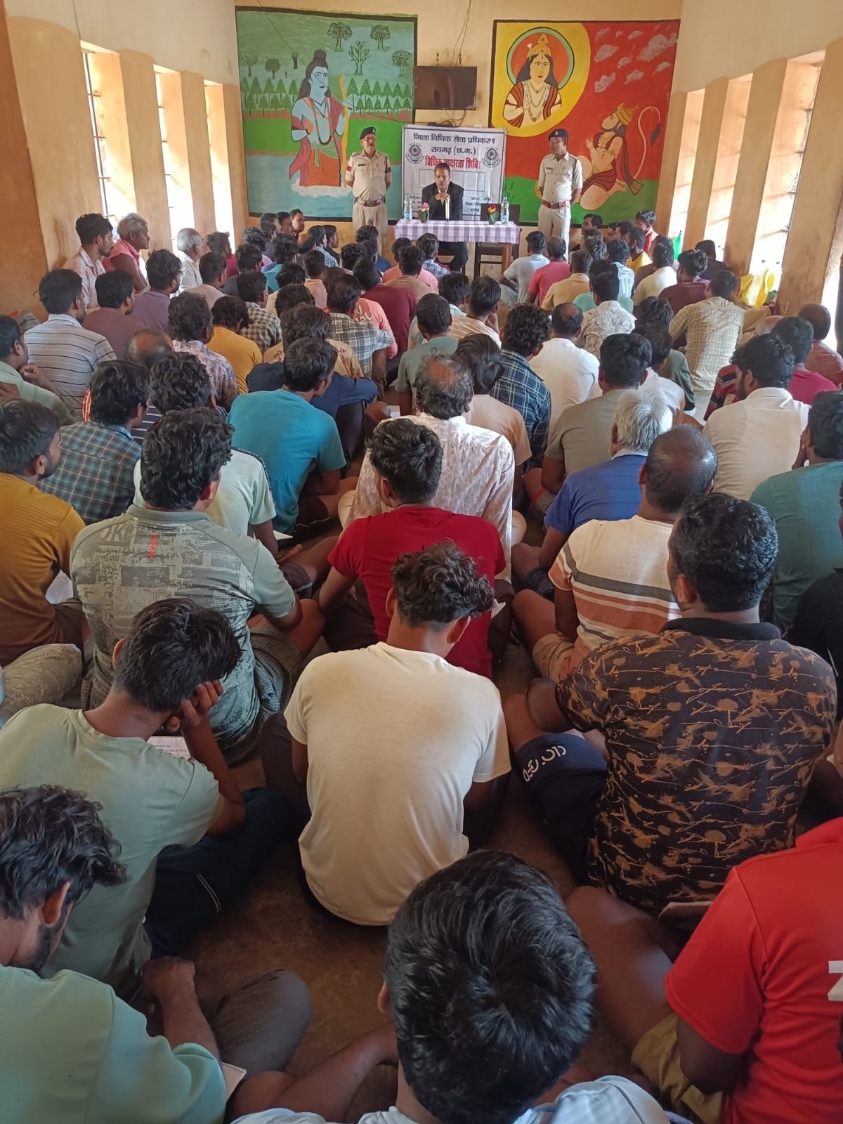 सारंगढ़ बिलाईगढ़ माननीय प्रधान न्यायाधीश अध्यक्ष जिला विधिक सेवा प्राधिकरण रायगढ़ श्री जितेंद्र कुमार जैन के निर्देशानुसार अपर जिला एवं सत्र न्यायाधीश अध्यक्ष तालुका विधिक सेवा समिति सारंगढ़ के मार्गदर्शन में मुख्य न्यायिक मजिस्ट्रेट निकसन डेविड लकड़ा न्यायाधीश के तत्वाधान में उप जेल सारंगढ़ में विधिक जागरूकता शिविर का आयोजन किया गया जिसमें न्यायाधीश महोदय जी द्वारा उप जेल में बंद विचाराधीन बंदियों को इंसाफ पाने के लिए कानून की जानकारी होना बहुत जरूरी है साथ ही नया कानून और बंदियों के अधिकार के बारे में जानकारी देते हुए बंदियों को नशा से दूर रहने एवं अपने स्वास्थ्य की देखभाल कर स्वस्थ रहने का सलाह दिया गया तथा बंदियों से अपने अपने केस के बारे में हमेशा जानकारी रखना एवं अपने अधिवक्ताओं से सलाह के साथ मार्गदर्शन लेते रहने का सलाह देते हुए बंदियों के समस्याओं के बारे में जानकारी लिया गया जिसमें कुल 200 बंदियों ने शिविर का लाभ उठाएं, उक्त शिविर में तालुका विधिक सेवा समिति सारंगढ़ से पैरालिगल वॉलिंटियर नारद प्रसाद श्रीवास थाना कोसिर एवं उप जेल सारंगढ़ के समस्त जेल स्टाफ शिविर में उपस्थित रहे।