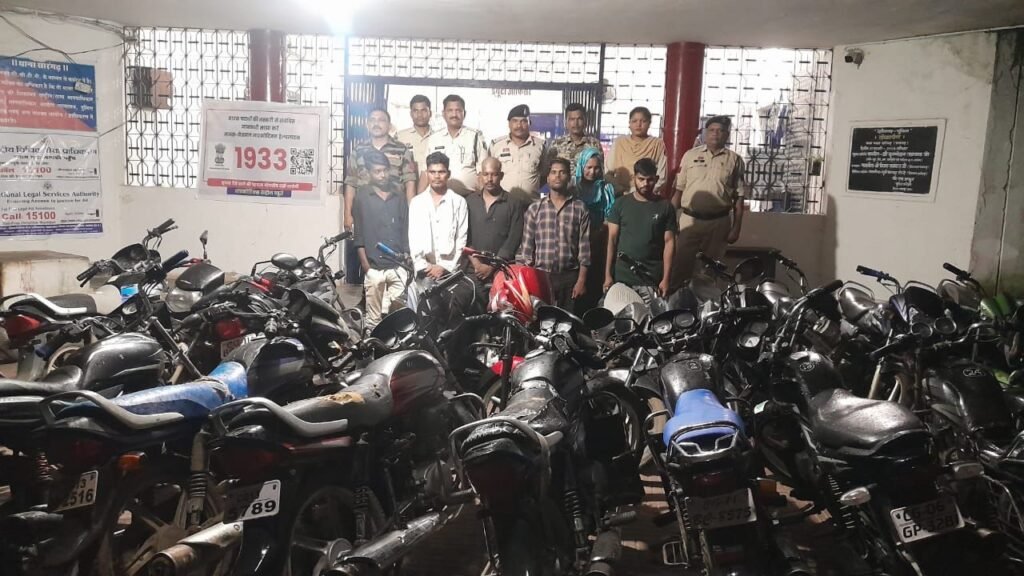 श्रीमान पुलिस अधीक्षक महोदय श्री आंजनेय वार्ष्णेय के द्वारा जिले के सभी थाना/चौकी प्रभारियों को चोरी की बढ़ती घटनाओं को रोकने हेतु व चोरी में संलिप्त व्यक्तियों पर कड़ी कार्यवाही करने हेतु निर्देशित करने पर अति0 पुलिस अधीक्षक श्रीमती निमिषा पांडे एवं उप पुलिस अधीक्षक श्रीमती स्नेहिल साहू के कुशल मार्गदर्शन में थाना प्रभारी कामिल हक के कुशल नेतृत्व में मोटरसाइकिल चोरी करने वाले आरोपियों को पकड़ने में सफलता मिली। थाना सिटी कोतवाली सारंगढ़ के अपराध क्रमांक 450/2025 धारा 303(2),317(2),3(5) बीएनएस मे प्रार्थी संजय सारथी पिता ज्योति राम निवासी रेंजर पर सारंगढ़ के द्वारा थाना आकर लिखित आवेदन पत्र पेश कर रिपोर्ट दर्ज कराया की प्रार्थी दिनांक 30.8.2025 को शाम के 4:00 बजे अपने मोटरसाइकिल क्रमांक सीजी 13 बी 6955 से सब्जी खरीदने सारंगढ़ सब्जी बाजार गया था सब्जी खरीद कर शाम करीबन 4.30 बजे वापस आकर देखा तो वहां पर उसकी मोटरसाइकिल नहीं था कोई अज्ञात चोर मोटरसाइकिल को चोरी कर ले गया था की रिपोर्ट अपराध पंजीबद्ध कर विवेचना में लिया गया विवेचना दौरान जरिए मुखबिर सूचना पर आरोपी अंकित देवांगन पिता अनंत राम देवांगन निवासी रायगढ़, विश्वकर्मा यादव पिता राजकुमार यादव निवासी डभरा, बृजेश चौहान उर्फ विशाल उर्फ विजय पिता काशीराम चौहान निवासी सारंगढ़ व अन्य दो फरार आरोपियों के द्वारा सारंगढ़ जिला के आसपास के जिलों से करीबन 30 बाइक चोरी करना पता चला तथा जिसमे से कुछ मोटरसाइकिल को सीता -सिदार पति धर्मजीत सिदार निवासी सारंगढ़ के माध्यम से सारंगढ़ क्षेत्र में बिक्री करना बताएं तथा चोरी की मोटरसाइकिल जानते हुए गोपी सिदार पिता गणेश सिदार निवासी सारंगढ़ तथा दीपक यादव पिता जनक राम यादव निवासी सारंगढ़ के द्वारा खरीदने पर सभी आरोपियों से कुल 30 मोटरसाइकिल जुमला रकम करीबन 18 लाख रुपए को मुताबिक जप्ती पत्रक के जप्त किया गया बाद सभी आरोपियों कों गिरफ्तार कर न्यायिक रिमांड पर जेल भेजा गया। सम्पूर्ण कार्यवाही मे निरीक्षक कामिल हक, सउनि अंजान सिंह कवर, अरविन्द सिंह,प्र0आर0- धनेश्वर उरांव, संतोष मिरी, सोनसाय यादव, आरक्षक- योगेश कुमार कुर्रे, सत्येन्द्र बंजारे, भुवनेश्वर चंद्रा, विक्रम सिंह सिदार, सुरेन्द्र पटेल, पुरूषोत्तम राठौर, एवं म0आर0-शंकुतला जायसवाल समस्त स्टाफ का विशेष योगदान रहा।