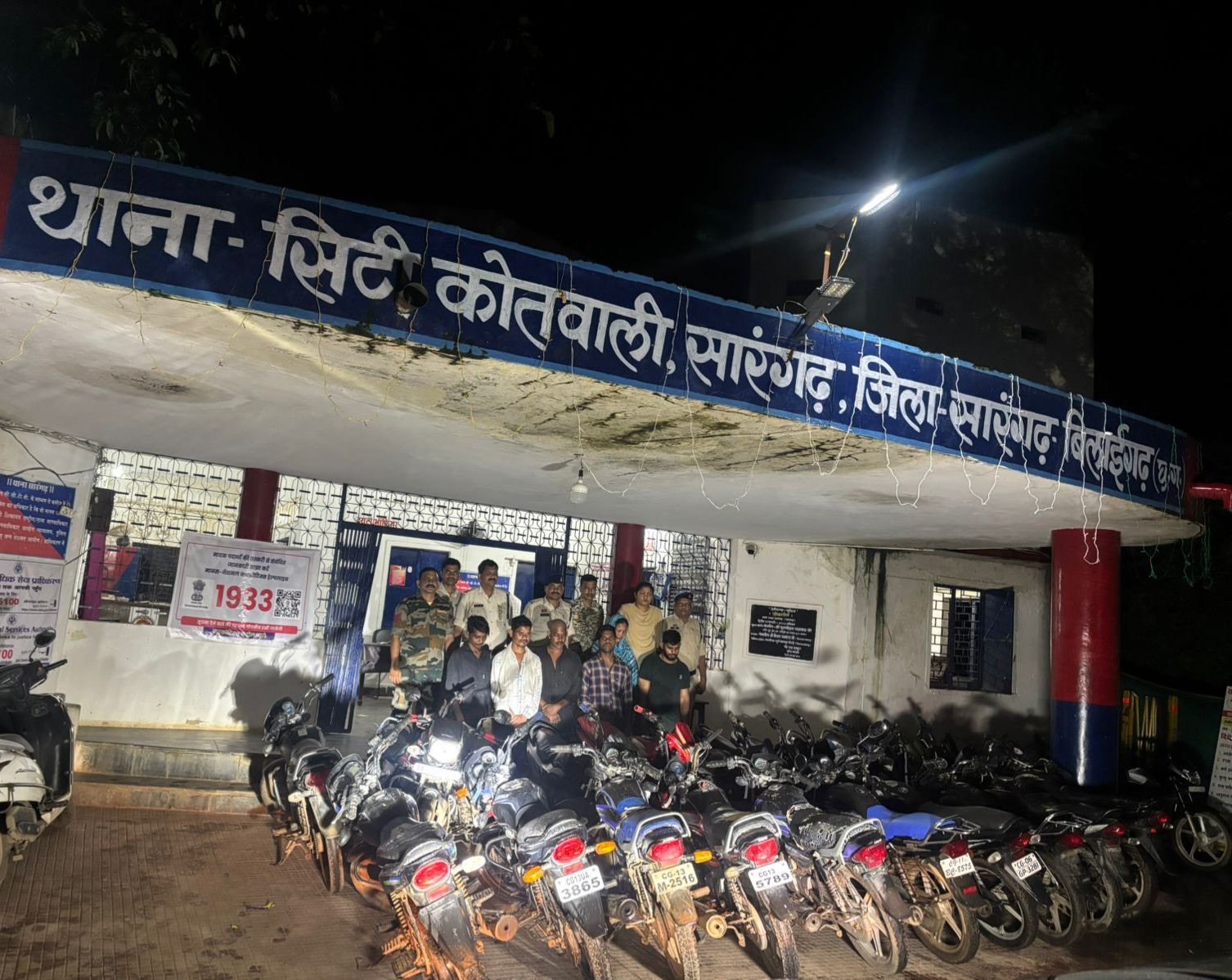 श्रीमान पुलिस अधीक्षक महोदय श्री आंजनेय वार्ष्णेय के द्वारा जिले के सभी थाना/चौकी प्रभारियों को चोरी की बढ़ती घटनाओं को रोकने हेतु व चोरी में संलिप्त व्यक्तियों पर कड़ी कार्यवाही करने हेतु निर्देशित करने पर अति0 पुलिस अधीक्षक श्रीमती निमिषा पांडे एवं उप पुलिस अधीक्षक श्रीमती स्नेहिल साहू के कुशल मार्गदर्शन में थाना प्रभारी कामिल हक के कुशल नेतृत्व में मोटरसाइकिल चोरी करने वाले आरोपियों को पकड़ने में सफलता मिली। थाना सिटी कोतवाली सारंगढ़ के अपराध क्रमांक 450/2025 धारा 303(2),317(2),3(5) बीएनएस मे प्रार्थी संजय सारथी पिता ज्योति राम निवासी रेंजर पर सारंगढ़ के द्वारा थाना आकर लिखित आवेदन पत्र पेश कर रिपोर्ट दर्ज कराया की प्रार्थी दिनांक 30.8.2025 को शाम के 4:00 बजे अपने मोटरसाइकिल क्रमांक सीजी 13 बी 6955 से सब्जी खरीदने सारंगढ़ सब्जी बाजार गया था सब्जी खरीद कर शाम करीबन 4.30 बजे वापस आकर देखा तो वहां पर उसकी मोटरसाइकिल नहीं था कोई अज्ञात चोर मोटरसाइकिल को चोरी कर ले गया था की रिपोर्ट अपराध पंजीबद्ध कर विवेचना में लिया गया विवेचना दौरान जरिए मुखबिर सूचना पर आरोपी अंकित देवांगन पिता अनंत राम देवांगन निवासी रायगढ़, विश्वकर्मा यादव पिता राजकुमार यादव निवासी डभरा, बृजेश चौहान उर्फ विशाल उर्फ विजय पिता काशीराम चौहान निवासी सारंगढ़ व अन्य दो फरार आरोपियों के द्वारा सारंगढ़ जिला के आसपास के जिलों से करीबन 30 बाइक चोरी करना पता चला तथा जिसमे से कुछ मोटरसाइकिल को सीता -सिदार पति धर्मजीत सिदार निवासी सारंगढ़ के माध्यम से सारंगढ़ क्षेत्र में बिक्री करना बताएं तथा चोरी की मोटरसाइकिल जानते हुए गोपी सिदार पिता गणेश सिदार निवासी सारंगढ़ तथा दीपक यादव पिता जनक राम यादव निवासी सारंगढ़ के द्वारा खरीदने पर सभी आरोपियों से कुल 30 मोटरसाइकिल जुमला रकम करीबन 18 लाख रुपए को मुताबिक जप्ती पत्रक के जप्त किया गया बाद सभी आरोपियों कों गिरफ्तार कर न्यायिक रिमांड पर जेल भेजा गया। सम्पूर्ण कार्यवाही मे निरीक्षक कामिल हक, सउनि अंजान सिंह कवर, अरविन्द सिंह,प्र0आर0- धनेश्वर उरांव, संतोष मिरी, सोनसाय यादव, आरक्षक- योगेश कुमार कुर्रे, सत्येन्द्र बंजारे, भुवनेश्वर चंद्रा, विक्रम सिंह सिदार, सुरेन्द्र पटेल, पुरूषोत्तम राठौर, एवं म0आर0-शंकुतला जायसवाल समस्त स्टाफ का विशेष योगदान रहा।