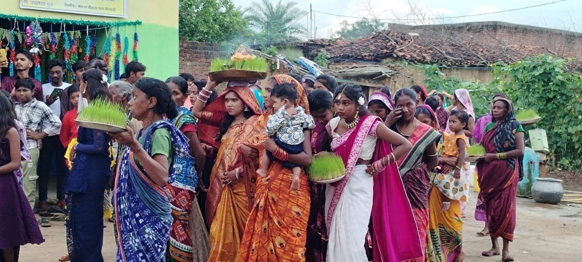 खैरगढ़ी में भोजली बिसर्जन का यह नज़ारा ग्रामीण संस्कृति की सुंदर झलक पेश करता है। एक ओर नुआखाई पर्व की खुशियाँ और दूसरी ओर भोजली की परंपरा—दोनों ने मिलकर पूरे गाँव को उत्सवमय बना दिया।