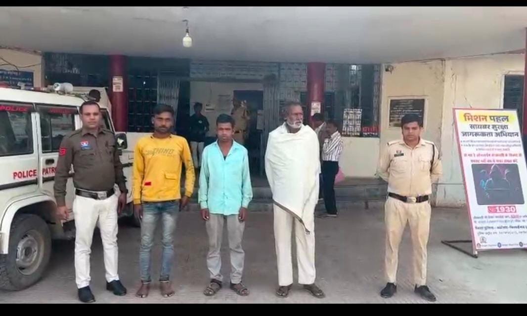 अप0क्रं0 61/2026 धारा- 4,5,10 पशु परिरक्षण अधिनियम 2004 में दिनांक 06.02.2026 को प्रार्थी प्रियव्रत स्वर्णकार के द्वारा सूचना प्राप्त हुआ कि मोचीपारा सारंगढ़ निवासी विरेन्द्र रात्रे एवं उसके साथीयो के द्वारा गौ हत्या कर मांस बिक्री करने के लिए अपने पास रखे है कि सूचना पर प्राप्त होने पर तत्काल हमराह स्टाफ के घटना स्थल जाकर आरोपीगणो- (1) विजय प्रकाश भारती पिता श्यामलाल भारती उम्र 22 वर्ष सा0 बरभांठा थाना कोसीर (2) संतोषी प्रेमी पिता गुहाराम उम्र 32 वर्ष सा0 भटगांव थाना भटगांव (3) मोहन खुटें पिता मनीराम खुटें उम्र 55 वर्ष सा0 मोचीपारा सारंगढ़ थाना सारंगढ को घेराबंदी कर पकड़े जिनके कब्जे से 8 किलोग्राम गौ मांस तथा अन्य 05 फरार आरोपियों के घर से 62 किलोग्राम गौ मांस,दो नग कुल्हाडी, दो नग खुरपा एवं एक पल्सर मोटर सायकल काला रंग क्रमांक- सीजी-11एपी-7296 कीमती- 50,000 रू0 जप्त किया गया है। तीन आरोपीगणो को दिनांक गिरफ्तार कर न्यायिक रिमाण्ड पर जेल भेजा गया है एवं शेष अन्य आरोपीगण- (4) विरेन्द्र रात्रे (5) सुखबाई मिरी (6) फुलबासन (7) जानकारी (8) कन्हैया आरोपी घटना दिनांक से फरार है, जिसकी पतासाजी की जा रही है।