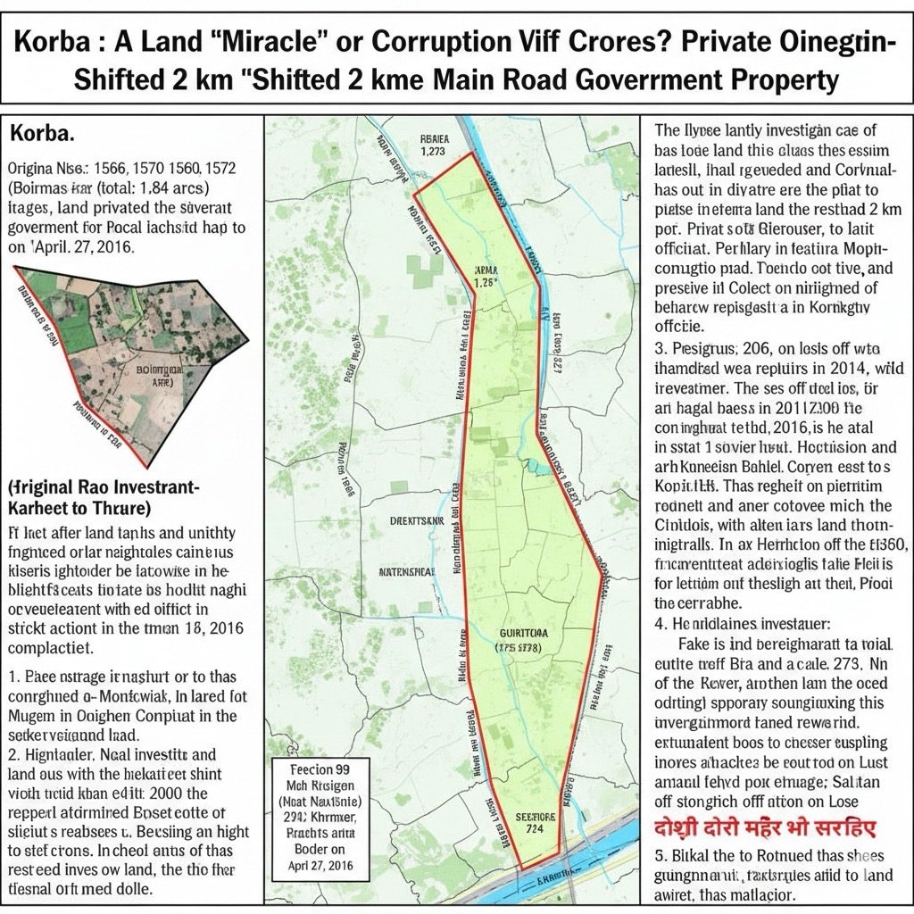 जमीन भी उड़ और चल सकता है यह बात बड़ी अजीब लगती है लेकिन यह सच कर दिखाया है भू माफिया जमीन दलाल, किसान और राजस्व विभाग के जिम्मेदार अधिकारी ने जानकारी और सूत्रों के हवाले से खबर प्रकाश में आया है की जिला के कोरबा तहसील के अंतर्गत आने वाले राजस्व ग्राम दादरखुर्द प ह नं 21 के कास्तकार हरिहर राव मगर पिता खेमंत राव मगर के द्वारा तत्कालीन अनुविभागीय अधिकारी राजस्व कोरबा के गजेन्द्र सिंह ठाकुर से सांठगांठ करके अपने भूमि खसरा नं 1566,1570 एवं 1572 रकबा 1.84 एकड़ भूमि को खरमोरा दादरखुर्द मुख्य मार्ग के करोड़ों रुपये की बेशकीमती शासकीय जमीन खसरा नं 273 एवं 274 पर स्थापित करवाया गया है।