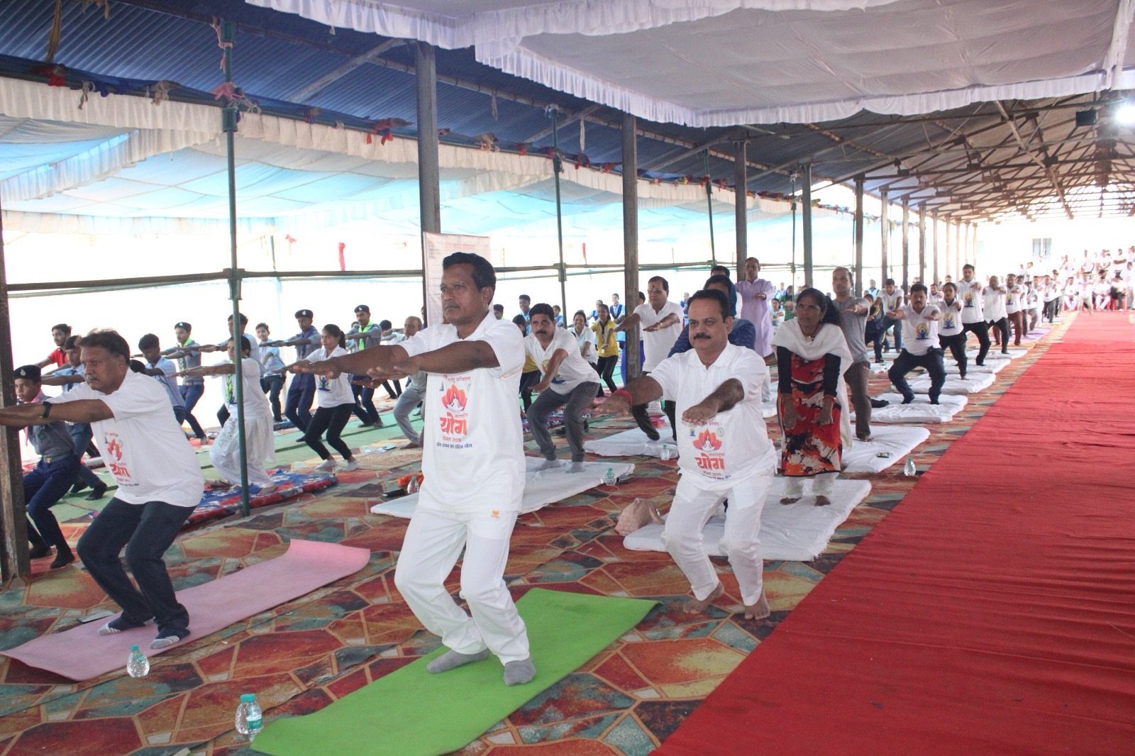 सारंगढ़ बिलाईगढ़ लोकसभा रायगढ़ के सांसद राधेश्याम राठिया के मुख्य आतिथ्य एवं विशिष्ट अतिथि जिपं अध्यक्ष संजय भूषण पांडे की उपस्थिति में एक पृथ्वी एक स्वास्थ्य थीम पर कृषि उपज मंडी परिसर सारंगढ़ में जिला स्तरीय योग दिवस के कार्यक्रम का आयोजन किया गया। इसमें जिले के जनप्रतिनिधि, पत्रकारगण विभिन्न विभागों के अधिकारी कर्मचारी, स्कूल, कॉलेज, भारत स्काउट, जूनियर रेडक्रॉस, एनएसएस आदि के सदस्य बड़ी संख्या में उपस्थित थे।
