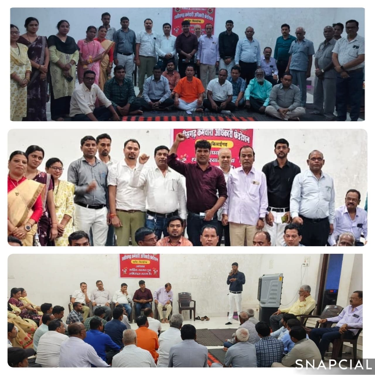 छत्तीसगढ़ कर्मचारी अधिकारी फेडरेशन के बैनर तले प्रांतीय संयोजक कमल वर्मा जी आह्वाहन पर ब्लॉक इकाई बिलाईगढ़ जिला सारंगढ़ बिलाईगढ़ के द्वारा सभी विभाग के संघीय पदाधिकारियों की बैठक भटगांव में आयोजित की गई।बैठक दौरान जिला प्रभारी, जिला संयोजक एवं जिला टीम का आत्मीय स्वागत किया गया। ब्लॉक संयोजक भागवत प्रसाद साहू ने बताया कि 22 अगस्त 2025 को पूरे राज्य में काम बंद – कलम बंद एक दिवसीय हड़ताल किया जाना है।उक्त हड़ताल को सफल बनाने ब्लॉक जिला की रणनीति बनाई गई। जिला पर्यवेक्षक श्री लैलून कुमार भारद्वाज ने क्रांतिकारी उद्बोधन देते हुए कहा मोदी की गारंटी लागू करते हुए 11 सूत्रीय मांगों को सरकार तत्काल पूरा करें। छग सरकार छत्तीसगढ़ के कर्मचारी/अधिकारी को अपनी छोटी छोटी मांगों के लिए हड़ताल करने मजबूर कर रही है। सभी संगठन के पदाधिकारियों को साथ मिलकर लड़ाई लड़ने की बात कही।इस दौरान जिला संयोजक फकीरा यादव जी ने संबोधित करते हुए कहा कि केंद्र सरकार के तर्ज पर आज 2 प्रतिशत महंगाई भत्ता बढ़ाई गई है लेकिन शेष दस मांगों पर कोई प्रतिक्रिया सरकार द्वारा नहीं दी गई।जब तक हमारी मांगों पर सरकार विचार नहीं करती तब तक हमारा जंग जारी रहेगा। हम अपना अधिकार लेकर रहेंगे।इस