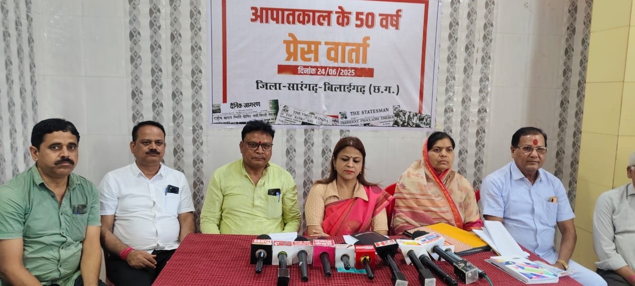 सारंगढ़ भाजपा ने आपात काल को लेकर केशरवानी भवन में लेकर प्रेस वार्ता आयोजन किया गया, जिसमे श्रीमती हर्षिता पांडेय प्रदेश भाजपा प्रवक्ता व राज्य महिला आयोग पूर्व अध्यक्ष, ज्योति लाल पटेल जिला भाजपा अध्यक्ष, श्रीमती केराबाई मनहर पूर्व विधायक , संजय पांडे जिला पंचायत अध्यक्ष,हरिनाथ खुंटे प्रदेश मंत्री भाजपा अजा मोर्चा,भूवनलाल मिश्रा कार्यक्रम संयोजक, जगन्नाथ केशरवानी ,मनोज जायसवाल , अजेश अग्रवाल प्रेस वार्ता में शामिल रहे आपातकाल को लेकर भाजपा प्रवक्ता हर्षिता पांडेय ने गांधी परिवार को जमकर निशाना साधा कहा भारत की हर एक नागरिक को आपातकाल के बारे में जानने की जरूरत है कांग्रेस किस हद तक गिर सकती है सता में रहने के लिए देश में आपातकाल लगा दिया न जाने कितने निर्दोष लोगों को सलाखें के पीछे डाल दिया।